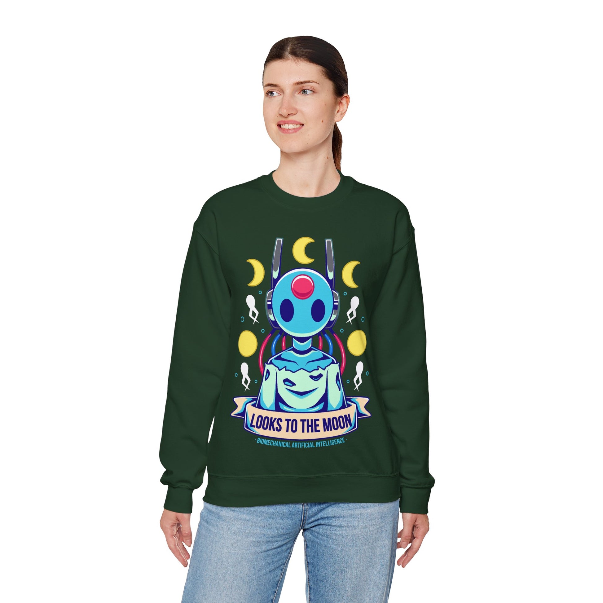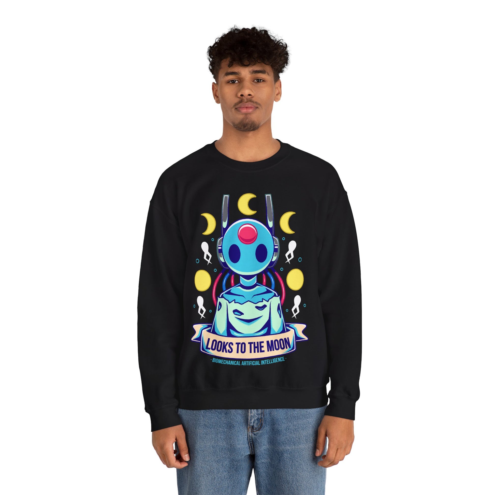 Gamer Crewneck Sweatshirt inspired by Looks to the Moon (Big Sis Moon) Iterator from Rain World survival-exploration-platformer indie game.