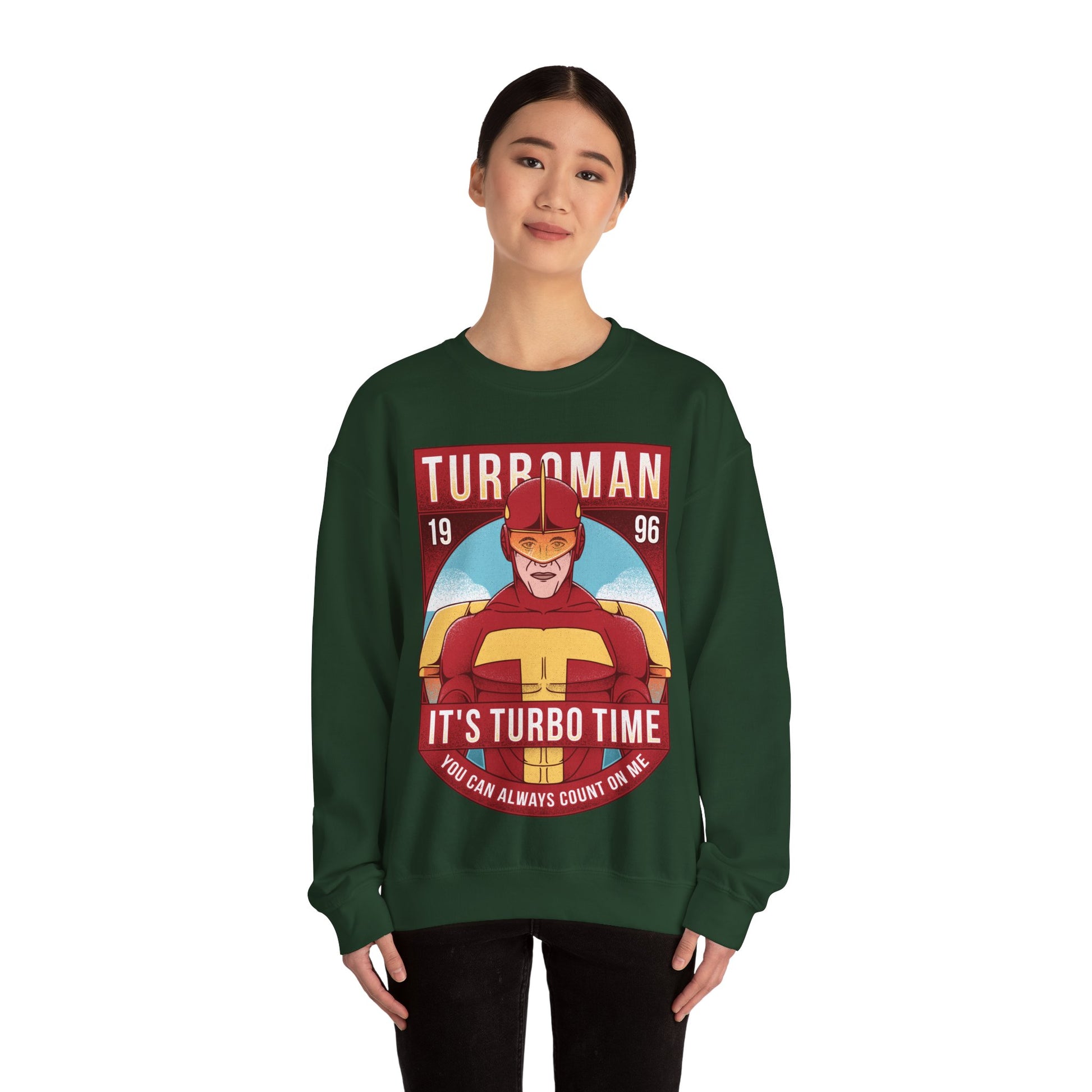 Crewneck sweatshirt inspired by Turbo Man from Jingle all the Way 1990s movie. You can always count on me. It's Turbo Time!
